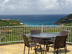 I have never been able to capture the “twinkling lights of St. Thomas at night” with a still camera. How MANY villas use that silly phrase in describing their views? (Um, well, add ours.) Got it on video, but not in a picture yet. The twinkling lights are there though. And, I still think these are the sexiest railings on the island.